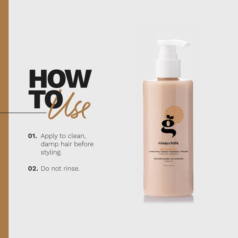 Ginger Milk Leave-in Conditioner for Curly, Wavy, and Coily Hair | Hydrates, Nourishes and strengthens | Be Yourself 8.5 oz
