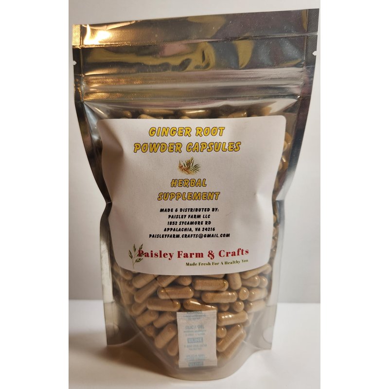 Made & Distributed by Paisley Farm and Crafts! Made in USA? Check! Non-GMO? Check! MADE FRESH ON DEMAND! Also available in different combo packs including Moringa Leaf Powder Capsules & Moringa Seed Powder Capsules! Looking to start your new year off with a bang and a health boosting combo? Well, now we have it! Each bag has dosage instructions and expiration date to help you get the most out of your capsule life. All capsules are bagged and shipped in a foil lined pouch with gel silica inserts to help protect against moisture. Please store in a cool, dry place to ensure capsules don’t sweat in warmer weather. Using all natural ginger root, we have provided a capsule that packs a powerful punch and is non-GMO! Filled by hand at the farm, we know what goes in each capsule every time. Ginger Root Powder Capsules (Size 0) = 8 capsules = 4000 mg. Ginger capsules are made with ground ginger root. **Paisley Farm and Crafts owners and employees are not medical practitioners, doctors or pharmacists. Any advice from other consumers listed is not to be taken as medical advice. As with all organic and natural supplements and products, we firmly suggest seeking the advice of a medical professional when taking new supplements or adding them to an existing prescription schedule. When using organic products, test on a patch of skin before using all over.