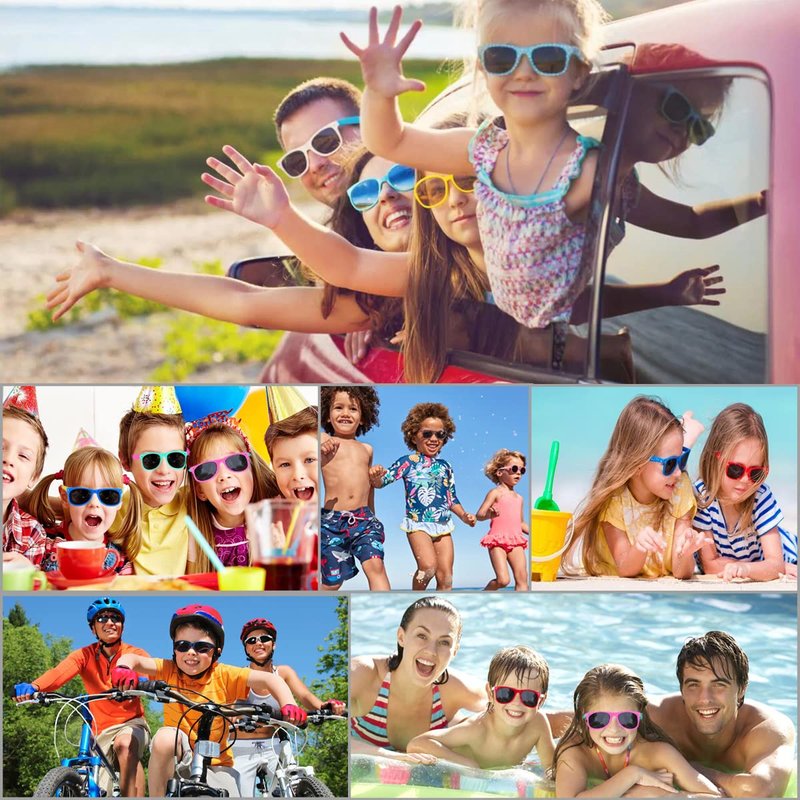 - High Improved Quality - Made of comfortable and sturdy polypropylene material, the kids sunglasses will last until you can't party no more! And the safe and lightweight frame makes you hardly feel them on your face, gives you a great experience at your everyday use. A great choice for parties supplies,pool party,school dance,birthday party,outdoor activities or group trips.