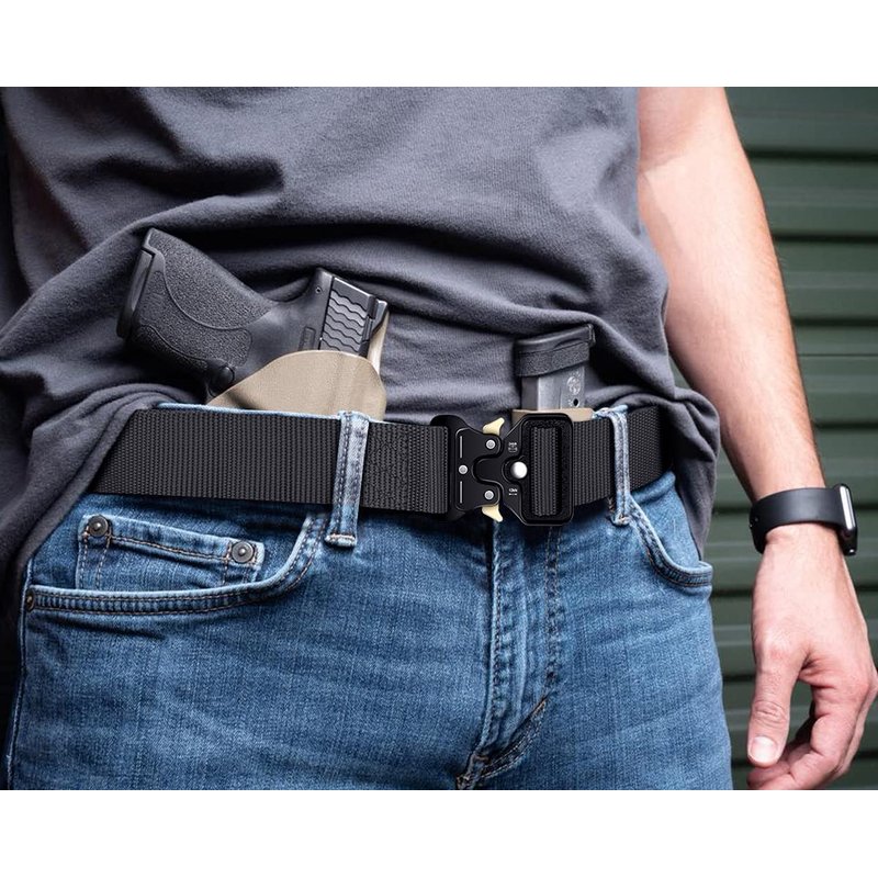 - Versatility - Easy to use, stiff enough to comfortably support your EDC gear, to carry a firearm, knives, survival kit, mags, IWB or OWB Holster. Perfect gun/shooter belt, riggers belt, battle belt, police belt and CCW belt for men.