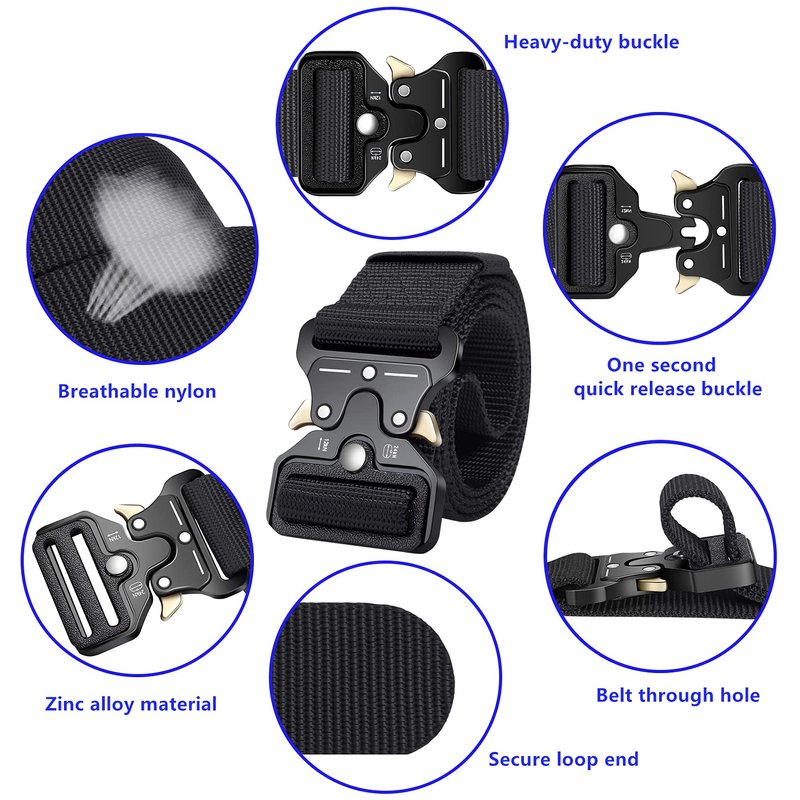 - Quality Nylon Belt - Made by 1000 D environmental friendly nylon material, soft and comfortable for daily use.Durable and breathable webbing belt for tactical activities ; No holes allows easy adjustment.