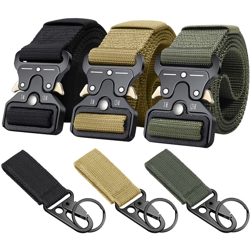 Ginwee 3-Pack Military Style Tactical Belts for Men, Quick-Release Metal Buckle with Molle Key Ring Holder