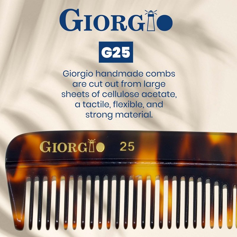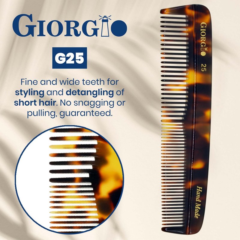 Giorgio G25 FineTooth and WideTooth Pocket Comb - Hair Styling Comb for Men and Women, Handmade Beard Comb for Men, Barber Comb, and Mustache Comb for Grooming,Saw Cut and Polished Travel Comb