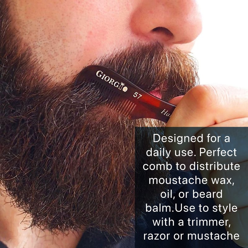- The perfect men's gift!!! ideal for birthdays, Father’s Day, valentine’s, weddings & graduations. Grooming is an everyday activity and Giorgio hand-made small mustache comb and beard combs are designed for a daily use. Mens comb to distribute moustache wax, oil or beard balm. Use to style with a trimmer, razor or mustache scissors