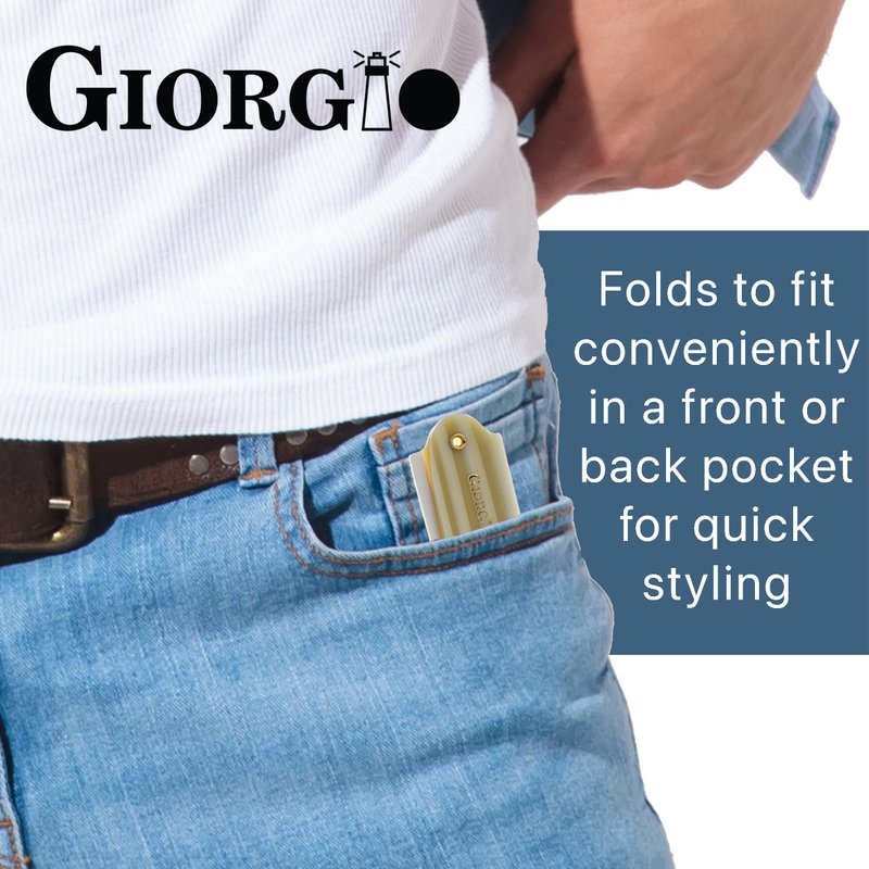 - Giorgio GIVY82 Pocket size: 7.87 inch open and 4 inch closed, Ivory finish. Gentleman's pocket combs for mustache and beard care and grooming. Rounded tips for sensitive skin and perfect detangle your mustache and beard. Its portable design fits easily in your pocket. Great mini moustache hair & beard straightener comb for men