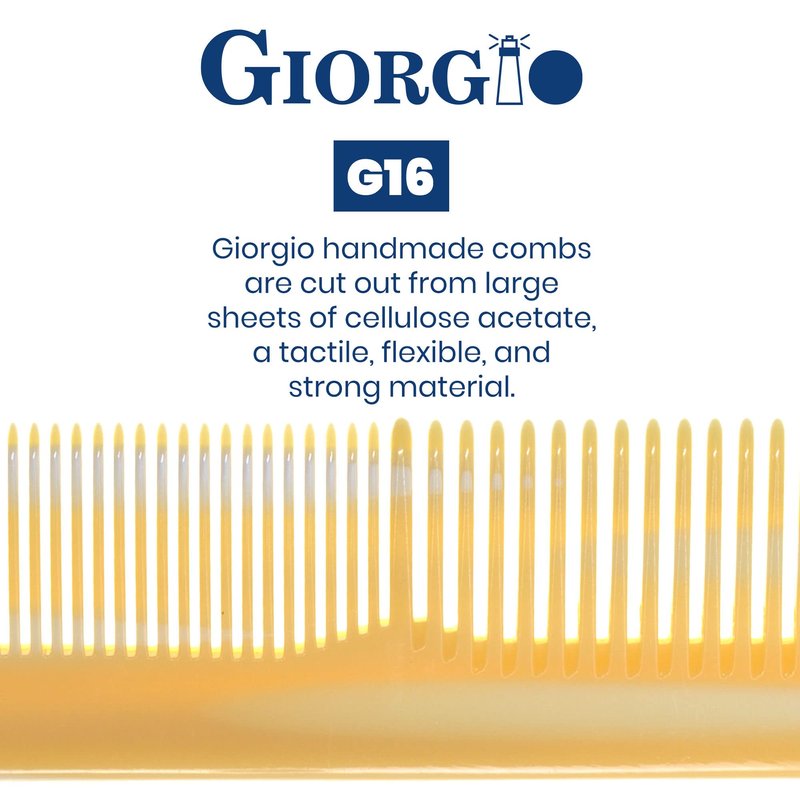 Giorgio G16 7.2 Inch Coarse / Fine teeth, Flexible women and men Hair, Beard & Mustache Dresser Comb. Hand-Made of quality Durable Cellulose , Saw-cut and Hand Polished. Saw cut and Hand Polished for ultimate and effortless smooth glide. Prevent Pulling and hair breakage. Rounded tips for sensitive scalps and release of hair's natural oils. Hand Made of quality Cellulose , a non-petroleum base material, that’s why they have minimal static.Smooth, rounded teeth for sensitive skin stimulating the hair cuticle’s and release of hair's natural oils for a hair strong and healthy. Anti-static. A women and men favorite comb for both hair and quick beard and mustache care. Easier to clean than wood. Unlike beard brushes, combs for beard and moustache are best used on damp hair. Ease to clean with shampoo under the tap.