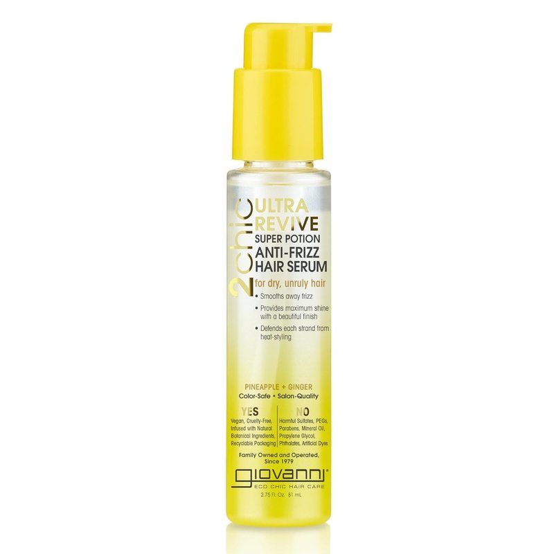 GIOVANNI 2chic Ultra-Revive Super Potion - Anti-Frizz Serum to Moisturize Dry, Unruly Hair, Enriched with Pineapple & Ginger, Works Great with Curly Hair, Color-Safe Hair Oil Serum - 2.75 oz