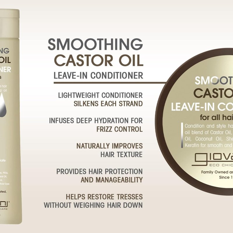 - SMOOTHING CASTOR OIL LEAVE-IN CONDITIONER - Use this refined Castor Oil Leave-In Conditioner hair treatment to help nourish and moisturize your hair and scalp, naturally improving hair texture