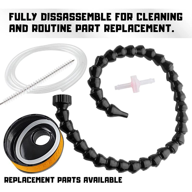 - FLEXIBLE AND ADJUSTABLE - Features a 25 inch / 63 cm flexible modular plastic hose and drinking tube. The neck is fully and repeatedly adjustable and will stay in place without springing back.
