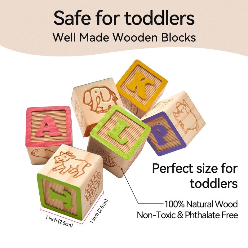 - EASY GRAB: The blocks with smooth edges are suitable for small hands to grasp easily. Children will enjoy hands-on, screen-free fun with these educational wooden blocks.