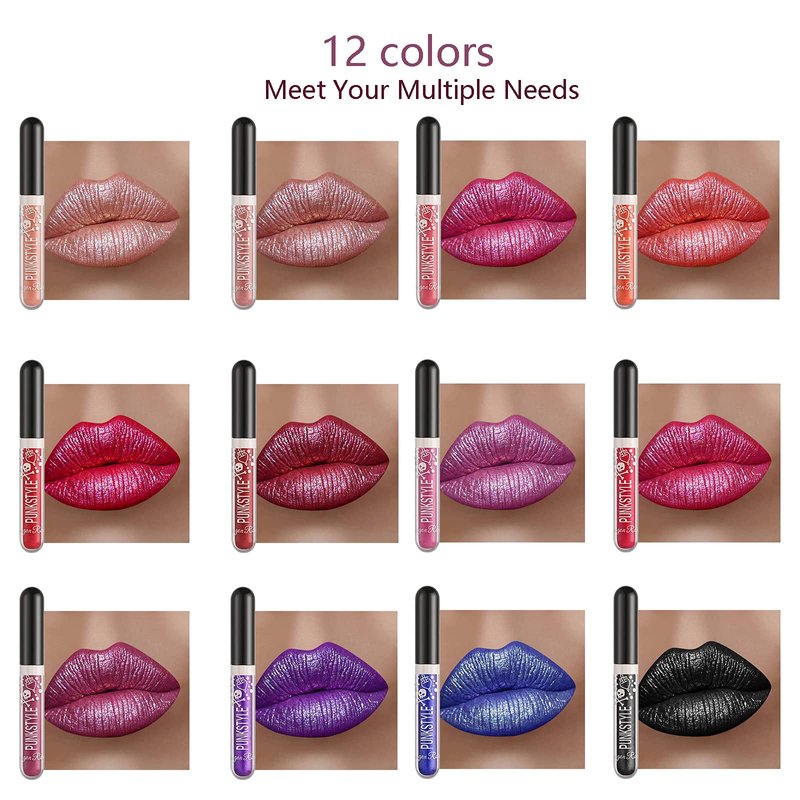 - 【12 Colors Shiny Lipstick Set】This diamond shimmer glitter metallic lip gloss set comes in 12 different colours, from the nude range to the red range to the dark range (purple/blue/black), multiple colour meet the needs of your daily use or for festive or parties. The sparkling lips highlight the mysterious beauty whether day or night