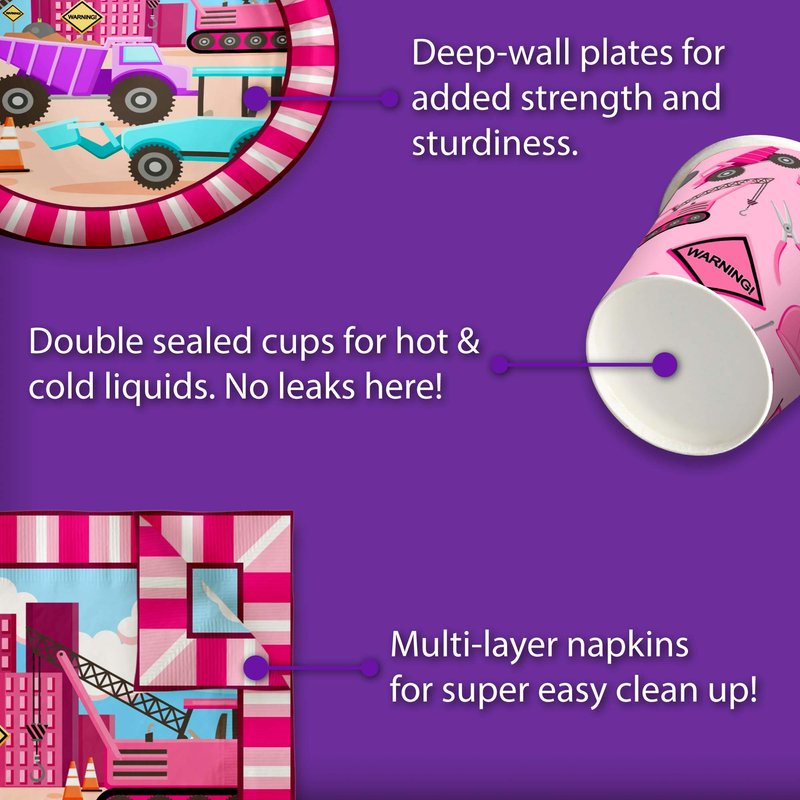 - PREMIUM DESIGN - Our Construction Themed Party Supplies are suitable for girl’s and boy’s birthday parties, holiday celebrations with your family and friends, special events or for just fun-filled daily meals, snacks, and desserts with picnics and cookouts. Shrieks of joy will be your reward when you use these fun and unique party tableware sets.
