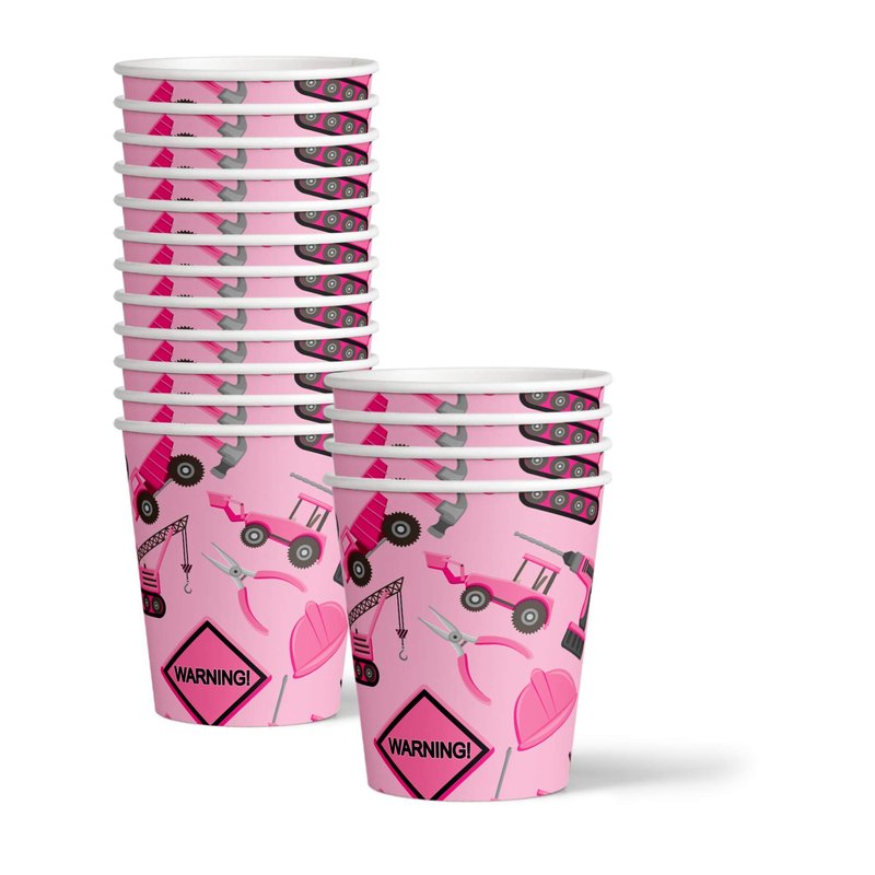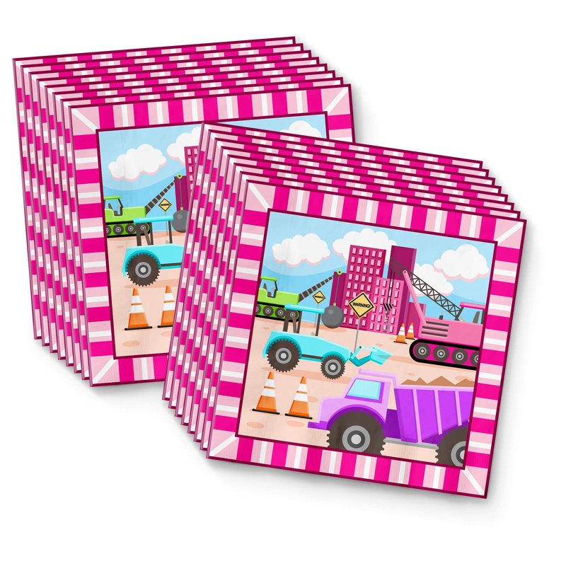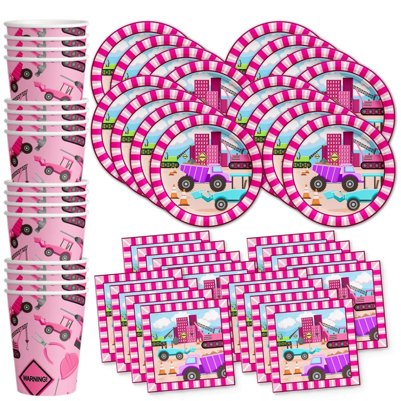 Girl Pink Construction Trucks Birthday Party Supplies Set Plates Napkins Cups Tableware Kit for 16