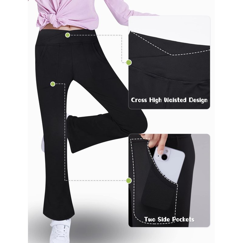Cross flare pants with pocket provide easy storage for small items. Girls yoga pants size 8 are designed with two pockets, allowing you to store keys, cell phone and other essentials in daily life, and hold pens, cards, candy and small items at Christmas. It frees up your hands to get other big things and Christmas gift.