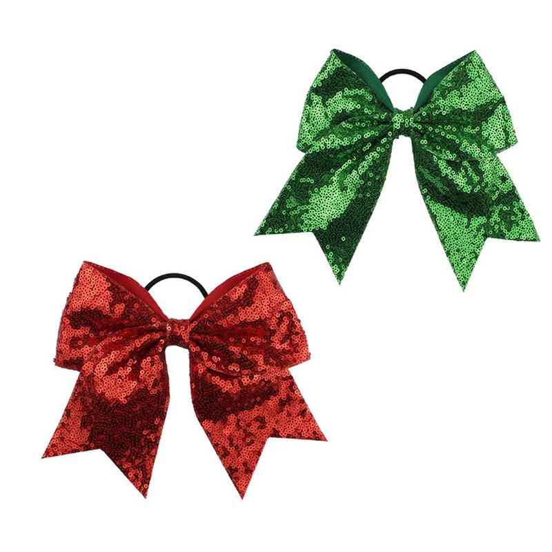 - Girls Cheer Ponytail Holder Big Bows With Glitter Sequins