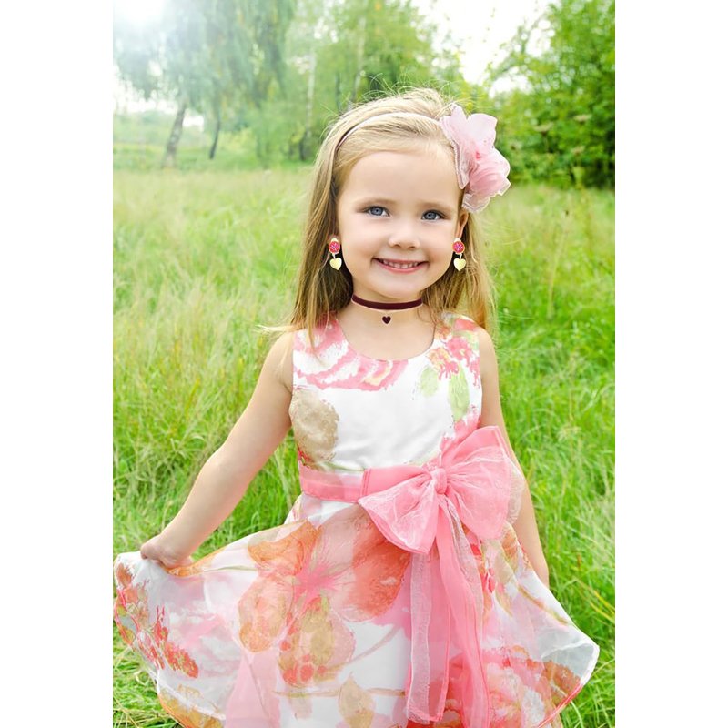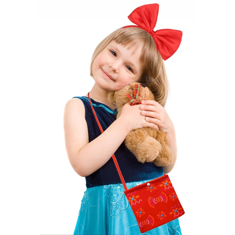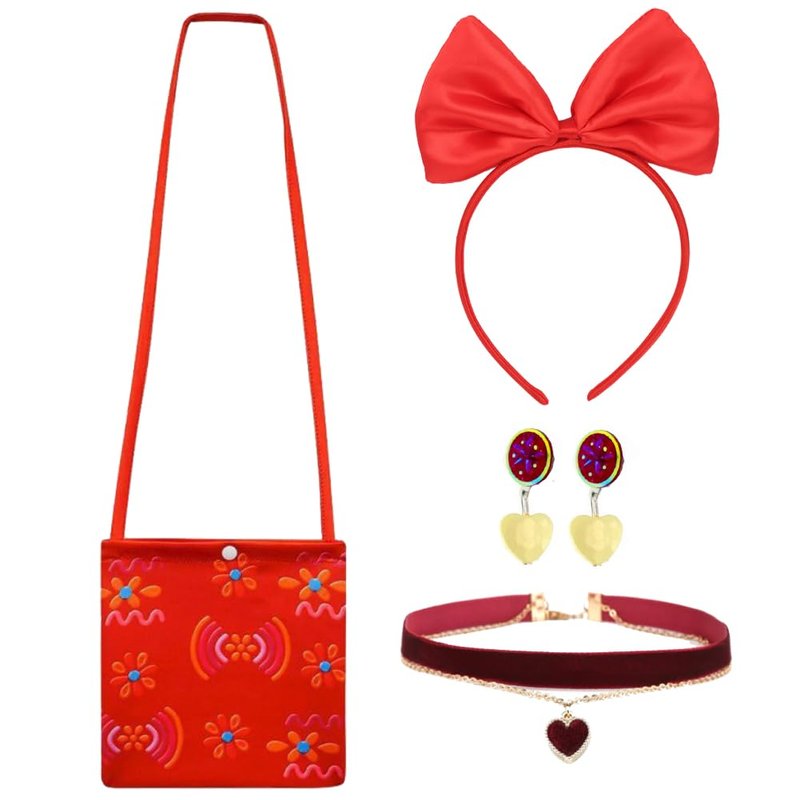 - Dolores Costume Accessories set includes: 1 printing crossbody bag + 1 heart choker + 1 red bow headband + 2 earrings. Perfect for girls Birthday parties and dress up games! Great costume for parties, stage performance etc.