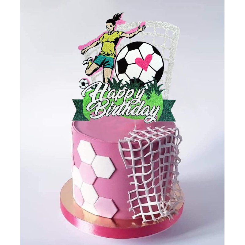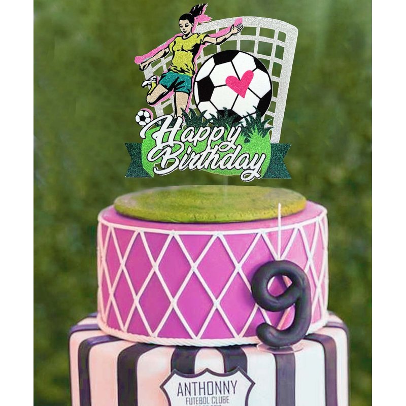 Girls Football Happy Birthday Cake Topper, Soccer Theme Birthday Party Decoration for Girls, Football World Cup Party Favor for Female Players Fans
