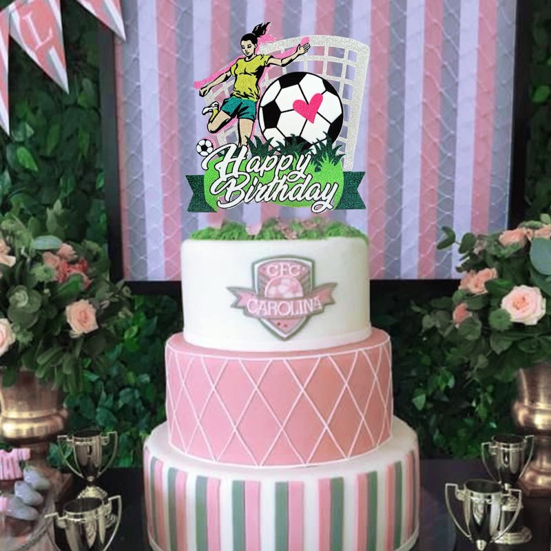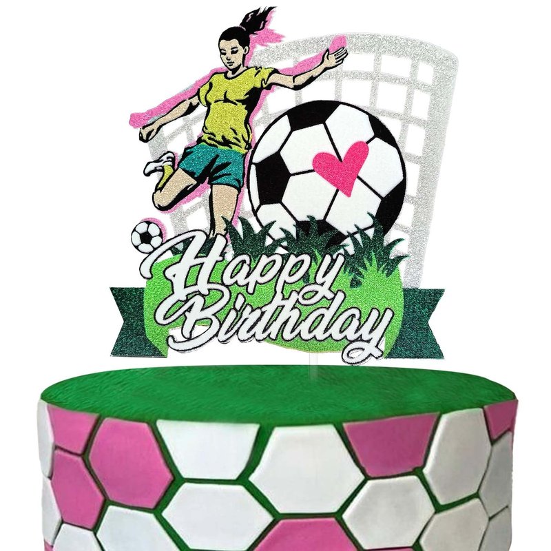 - ❤️Material: This female soccer player birthday cake décor is made of high-quality DOUBLE-SIDED GLITTER cardstock and food-grade acrylic stick; the glitter will not come off, clean and safe.