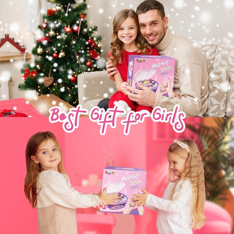 - Safe & Peelable Nail Polish: The girls nail polish set has 5 colors of water based nail polishes, safe for kids. The washable nail polish could be easily peeled off of nails for girls, protecting tender skin and nails for kids. Your little girl can enjoy a safe, comfortable nail salon experience. Our manicure kit help your girls undertake their design journey happily, boldly unleash her imagination. Amazing toys for girls 8-10 to have a kids spa party.
