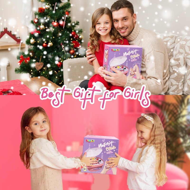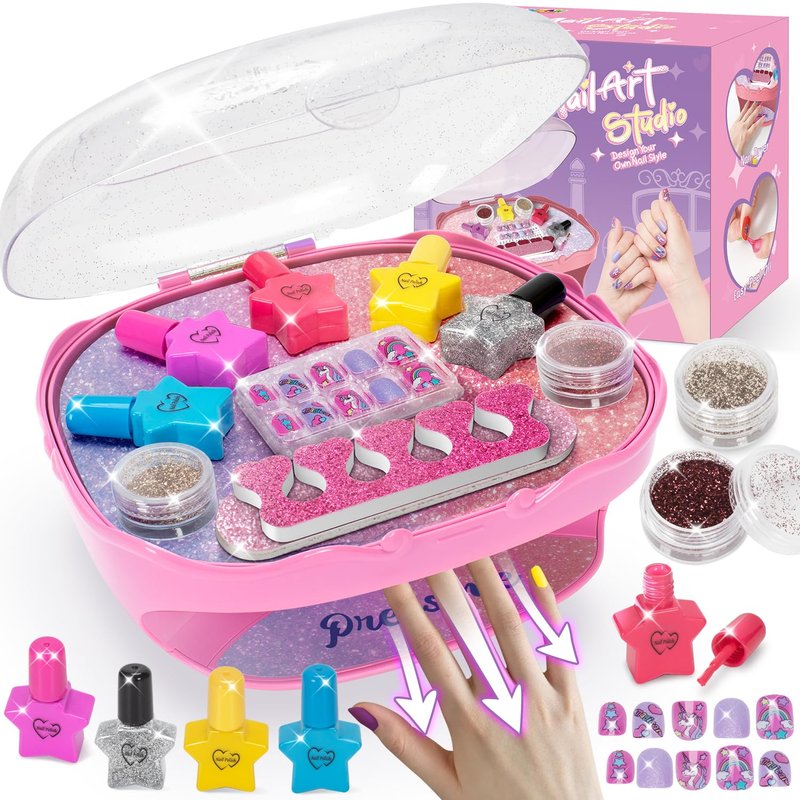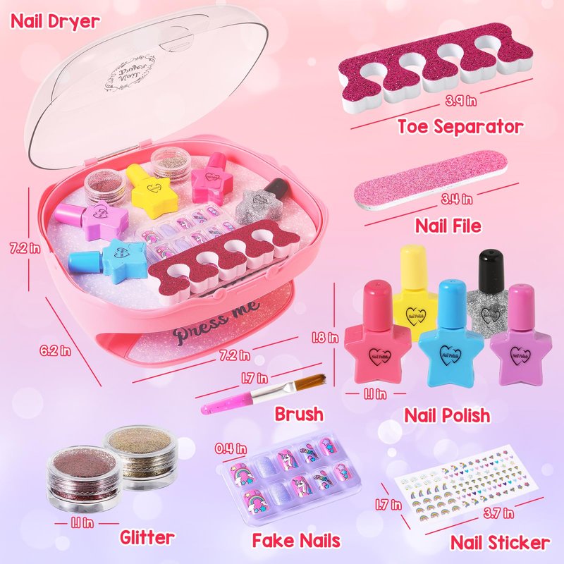 Girls Nail Polish Set, Toys for Girls Age 5 6 7 8 9 10, Nail Care Kit with Nail Polish, Nail Dryer, Fake Nails, nail Glitter, Nail Filer and Toe Separator, Ideal Birthday Gifts for Girls 5-8