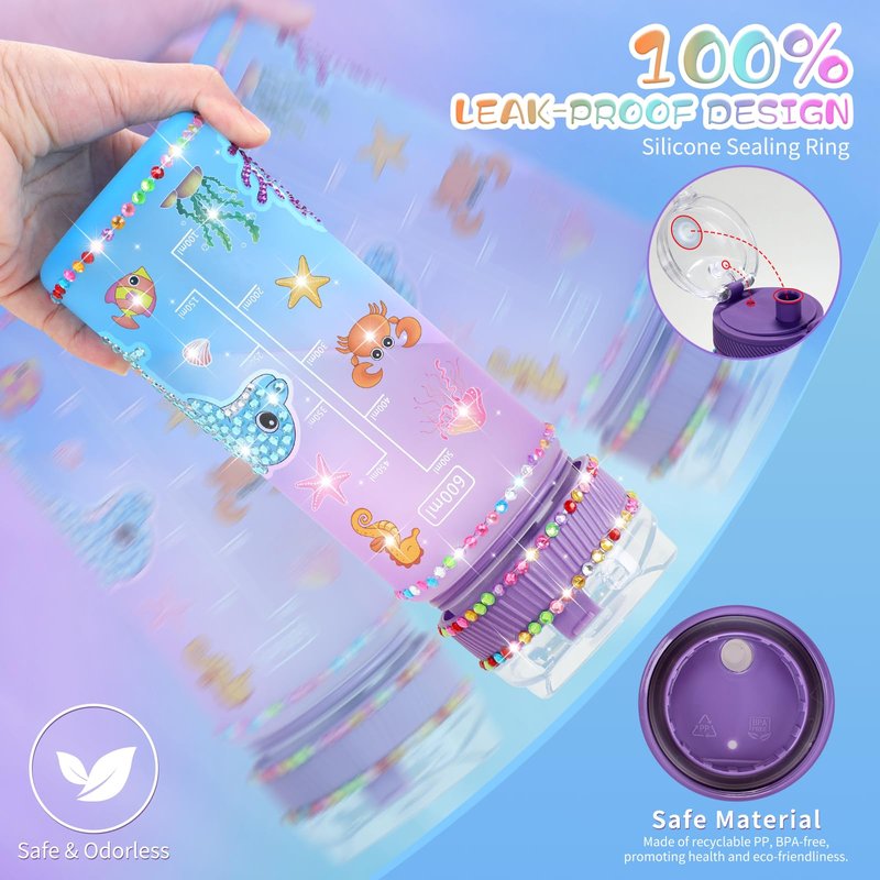 - 💝 𝐈𝐝𝐞𝐚𝐥 𝐆𝐢𝐟𝐭: Our BPA-free DIY water drink bottle, featuring capacity markings, comes with a delightful selection of diamond and unicorn stickers, all beautifully packaged. Perfect for daughters, granddaughters, and girls aged 6-12, it's an ideal gift for activities like running, traveling, school, camping, picnics, and both indoor and outdoor sports.
