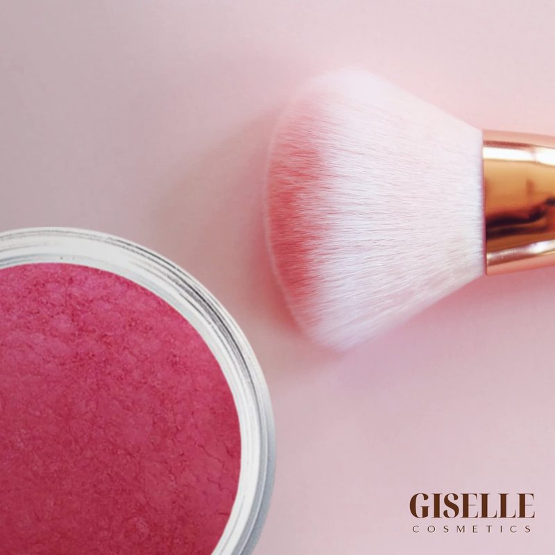 Giselle Cosmetics Blush - Giselle Doll 5g Benefits of Giselle's Mineral Makeup: 1- Provides Sun Protection 2- Provides Better Coverage 3- Looks Great on Camera 4- Won't Settle into Fine Lines 5- Is Suitable for All Skin Types 6- is Rosacea-Friendly 7- is Good for Acne-Prone Skin8- is Good for Sensitive Skin 9- is Long-WearingHow to Apply Blush, How to put on blush and Where to apply blush Heart Shape Face: Apply blush to a heart-shaped face in a “C” shape. If your face is more heart-shaped, apply your blush in a curved line from the top of your temple down to your cheekbone. Apply the blush a little more softly on your temple and gradually increase pressure as you approach the cheekbone area.Round Shape Face: Avoid the apples of your cheeks if your face is round. You can add more definition to your face if you suck in your cheeks and lightly sweep the blush brush in a line underneath your cheekbones. Don’t apply blush to the apples of your cheeks because this will make your face look more round. Oval Shape face:Go from the cheekbone to the temple if your face is more oval. Using soft strokes, move from the most prominent part of your cheekbone down towards the earlobe. Add a touch of blush just above the temple as well. Square Shape Face: Apply blush in a circular motion if you have a square face. Apply your blush directly to the apples of your cheeks in a circular motion to soften angular features and also draw attention to the most round part of your face.