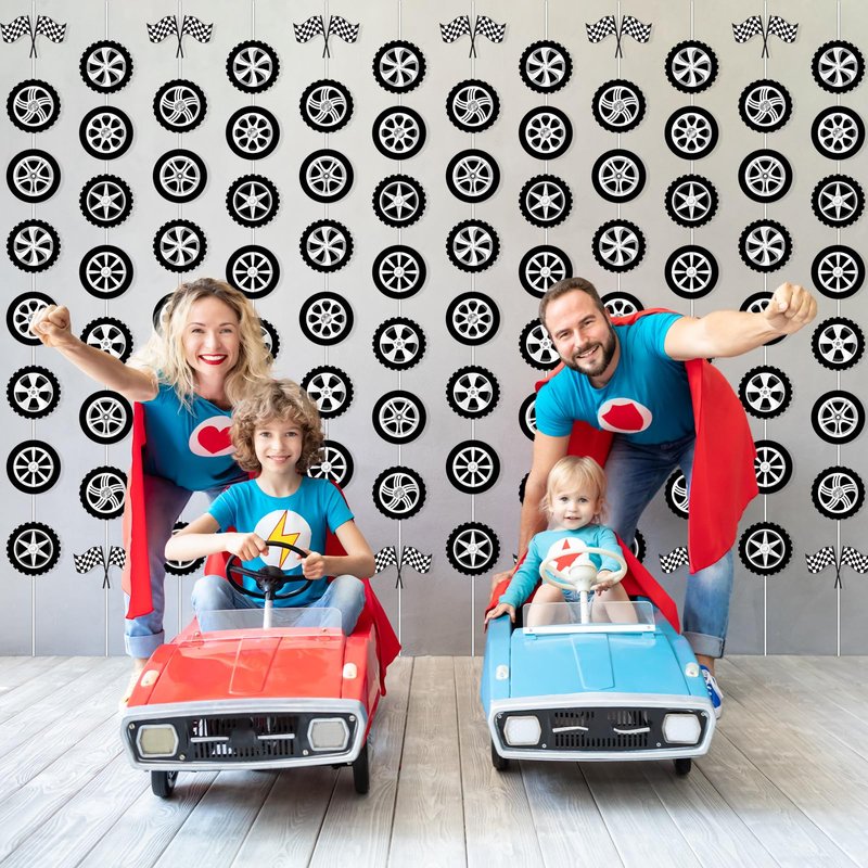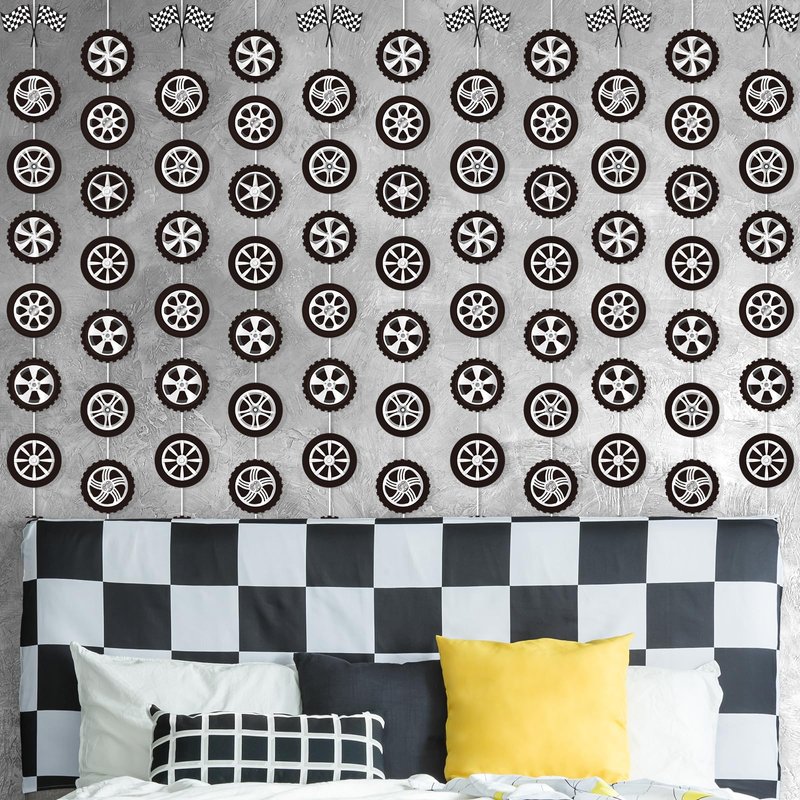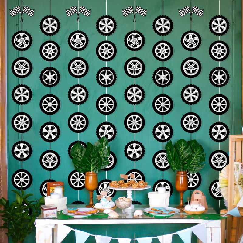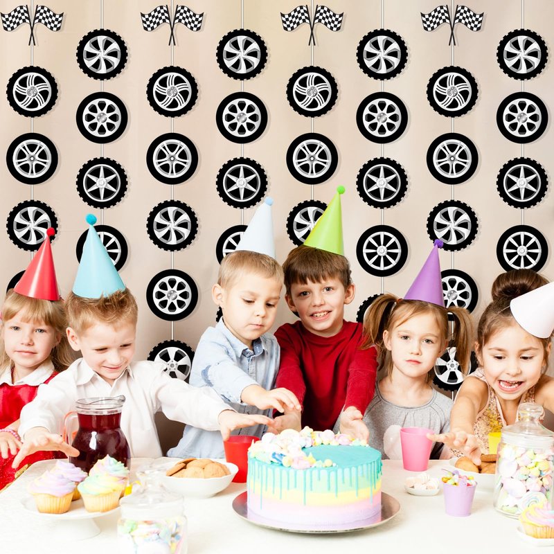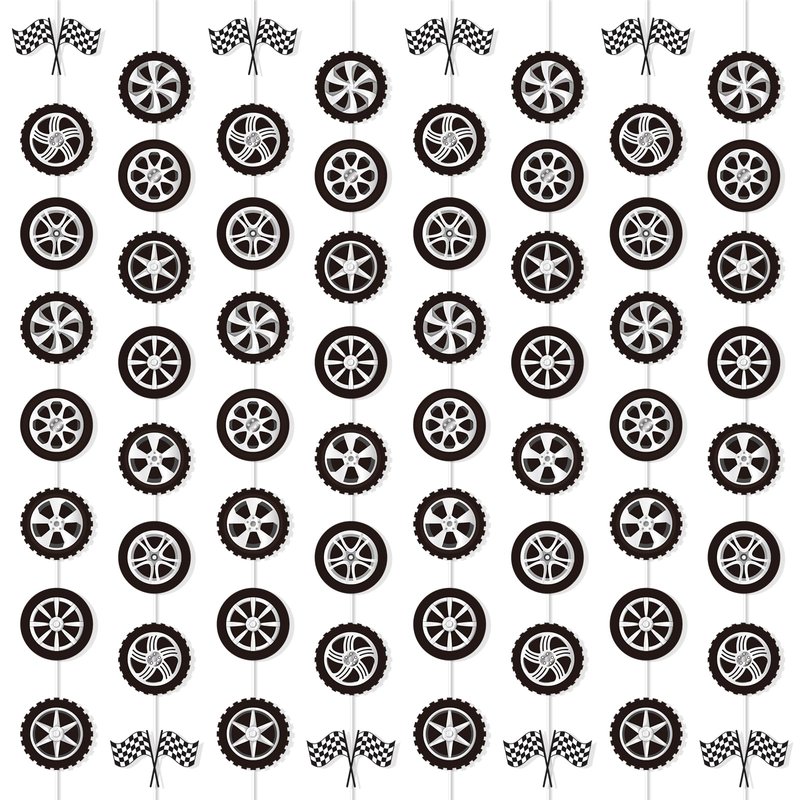 - Package Includes: You’ll get 12 strings of race car party garland banner each measuring approximately 5.4ft/1.65m in length, each featuring an array of car tyre cutouts that are ideal for adding a dynamic touch to any race car-themed event.