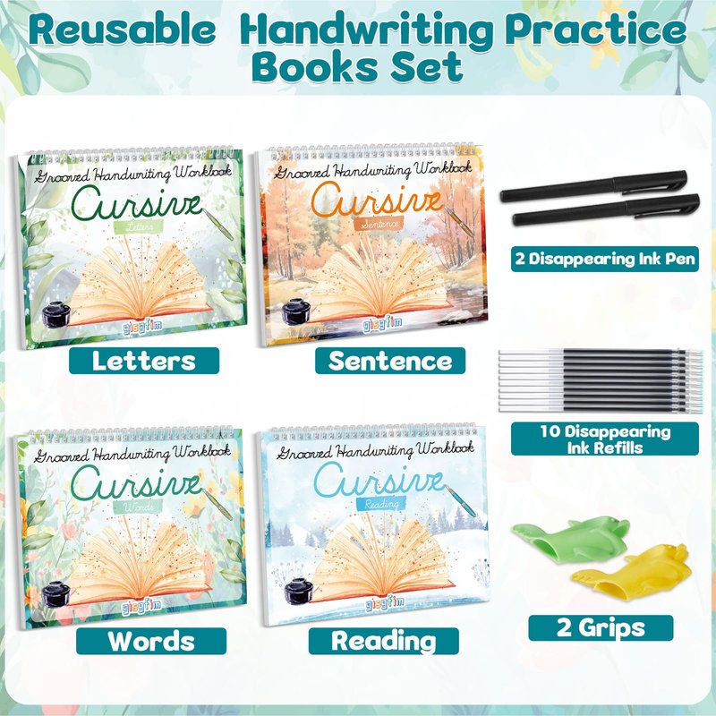 - Cursive Writing Practice Kits: the 4 grooved cursive handwriting workbook kit included words, letters, sentences and reading, which set serves as a versatile cursive handwriting workbook for teens, kids, and even adults, making it a perfect tool for both beginners and those looking to refine their skills