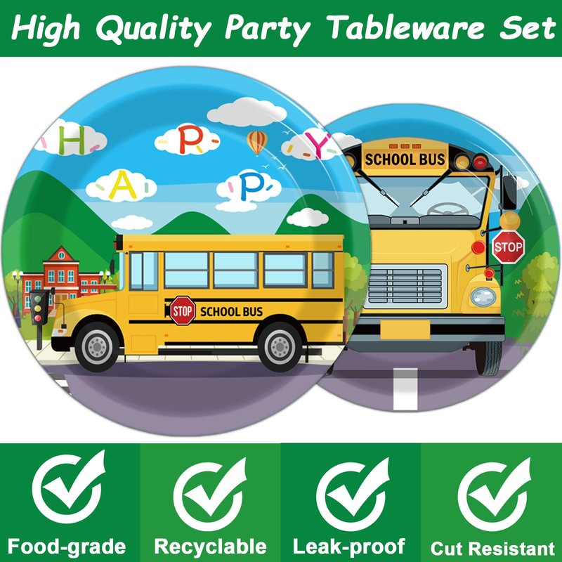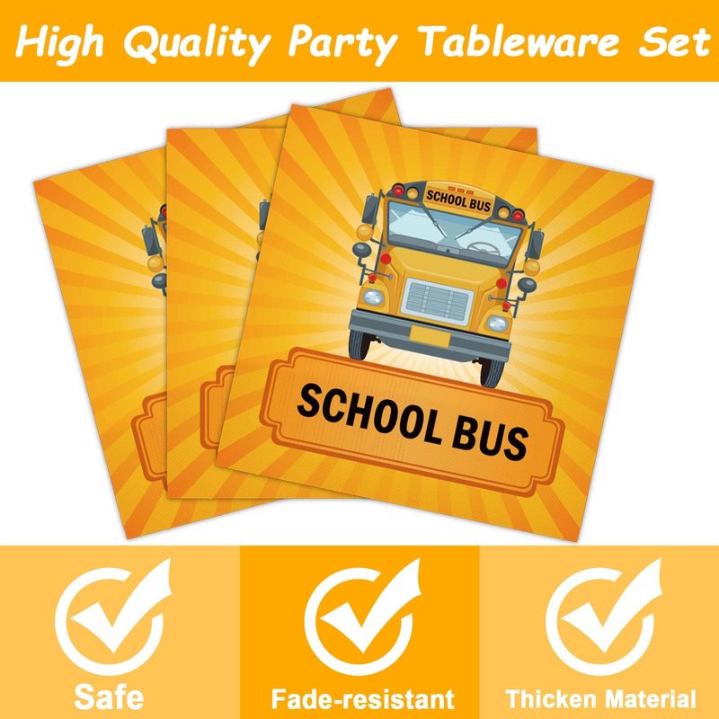 - 【Back to School Table Settings】These back to school party tableware kit can serve 24 guests, an enough quantity for a normal school bus theme big day. These school bus party decoration kit will make your table settings look fantastic and all your guests will be happy.