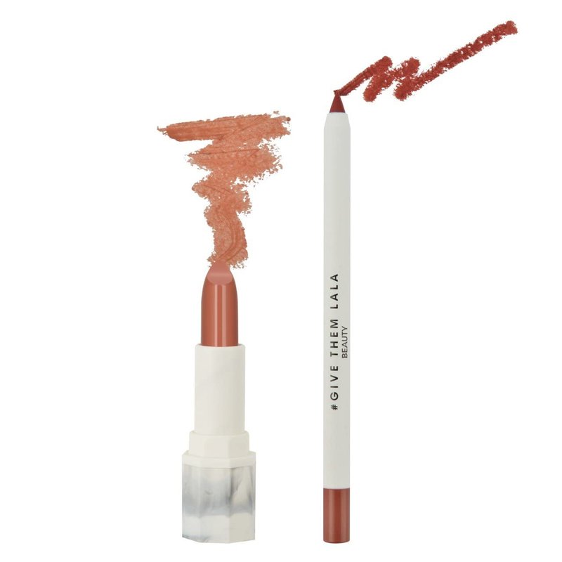 MAKE THEM GO OOH LA LA WITH THIS LONG-LASTING LIPSTICK AND LIP LINER SET IN BUBBALook absolutely divine in deep mocha with GIVE THEM LALA Lip Duo in Bubba. This beautiful hue coats your lips in a highly pigmented formula that feels creamy and comfortable on your lips, for a soft and sensual pout.The high pigment lipstick and long-lasting lip liner ensure you stay looking your best at school, the office, a party, or anywhere you show your pretty face. This deep coffee shade adds an alluring pop of color that brightens up your face and enhances your look no matter your style. Our lip pencil set is easy to use, compact enough to carry anywhere, and vibrantly colored to truly make an impression. This combo is super versatile. Use the lip liner to subtly define or fill in your lips, and then apply the lipstick for a stunning finish that lasts all day.ABOUT #GIVE THEM LALA BEAUTYLala Beauty is a luxury cosmetics line that includes a range of high-pigment matte lipsticks, lip glosses for an additional touch of glam, eyeliner, bronzers, and more.As company founder, Lala has worked hard to create a line of products she feels captures her own personal style and completely designed the line from start to finish. All our products and ingredients are cruelty-free and haven't been tested on animals. Look and feel your best in eye, face, and lip makeup that's gentle, comfortable, and flawless. PRODUCT FEATURES●Compact Makeup Lip Kit●Stunning Deep Mocha Color●Lightweight, Comfortable Formula●High Pigmented, Long Lasting Coverage●Cruelty-FreeOUR PROMISEWe are committed to the quality of our products and offering the best customer service possible. If you have any issues with your order or product please contact us right away so that we can make sure you walk away a happy customer.