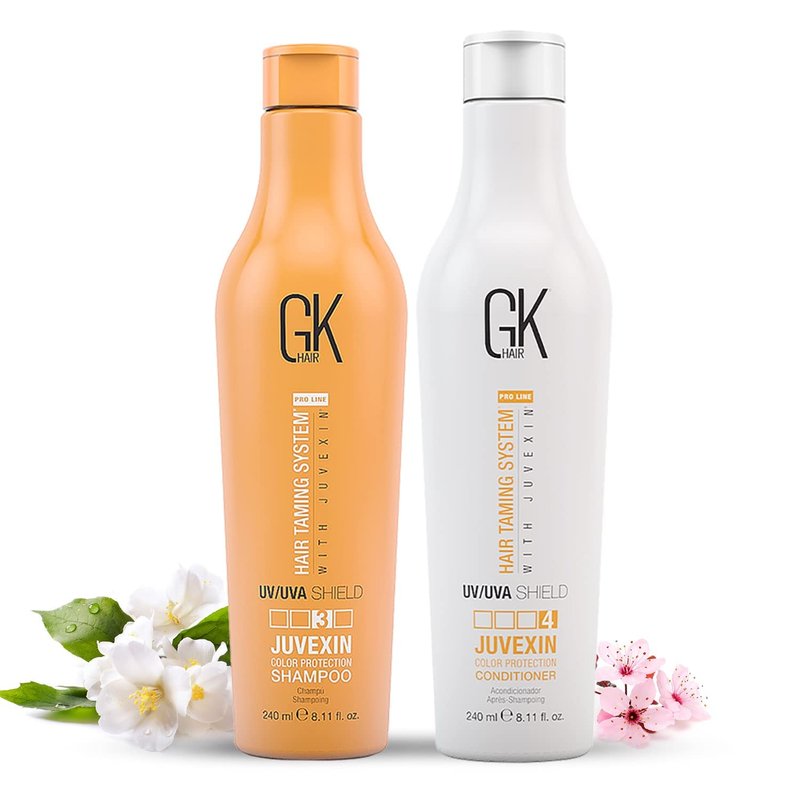 GK HAIR Shield Shampoo is an exclusive combination of ALOE VERA, NATURAL FLOWER SEED OILS, that keep color vibrant and UV/ UVA Shield Protection that will help block harmful sun rays causing hair dryness and split ends. Furthermore, this sulfate-free and paraben-free hair shampoo would block the possible hair damages and prevent colored hair from fading while hydrating. GK HAIR Color Shield Conditioner protects and nourishes hair so your color stays vibrant. Combination of natural ingredients lock color in longer to fight fade-out and penetrate deep to nourish damaged hair and make it shinier. This Color Shield Conditioner unleashes the significant hair essentials such as the Color Protection, UV/ UVA Shield, which defy the true identity of healthy hair and healthy maintenance for the hair color. Buy now GK HAIR Shield Shampoo and Conditioner to create a shield over each hair strand.INGREDIENTS:Keratin anti-aging protein blend optimized for restoring hair from the inside out, returning it to a more youthful state. Protects against future damage and environmental effects by creating a shield over each hair strand.ALOE VERA for long lasting moisture.NATURAL FLOWER SEED OILS repair damaged hair.FEATURES:Protects and MoisturizesShields from Harmful raysPromotes Lasting ColorBENEFITS:UV/ UVA ProtectionColor ProtectionSulfate Free