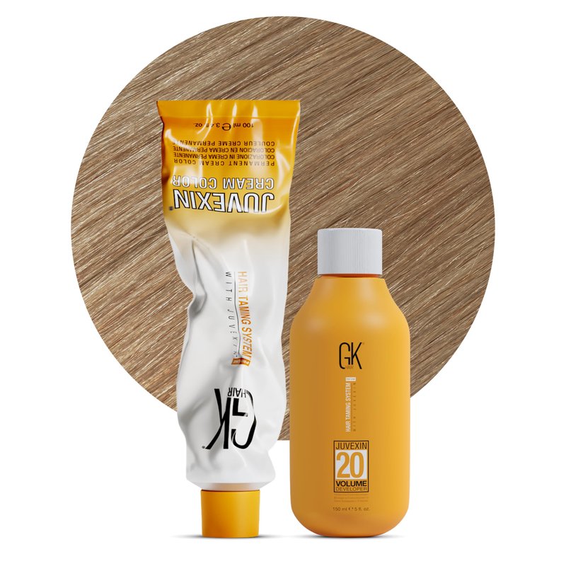 GK HAIR Global Keratin Natural 9 Very Light Blonde Hair Color Cream Tube (3.4 Fl Oz/100ml) + 20 Volume Developer (5 Fl Oz/150ml) - Professional Permanent Long Lasting Toner Dye
