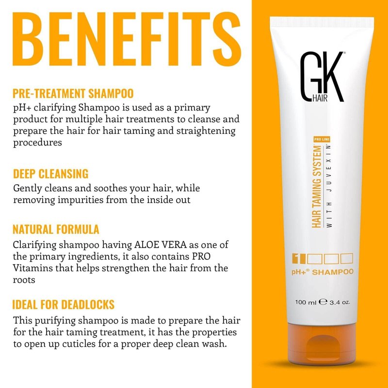 GK HAIR Global Keratin pH+ Pre-Treatment Clarifying Shampoo (3.4 Fl Oz/100ml) For Preps Hair Deep Cleansing,Removes Impurities -With Aloe Vera, Vitamins & Natural Oils All Hair Types Men and Women