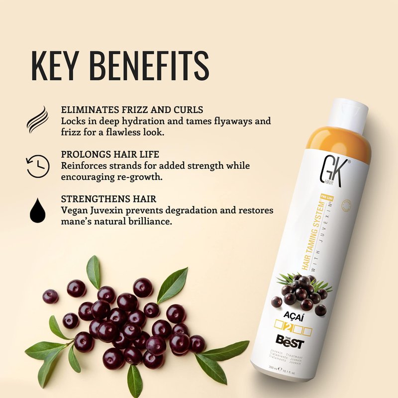 GK HAIR Global Keratin The Best ACAI (10.1 Fl Oz/300ml) Smoothing Keratin Hair Treatment - Professional Brazilian Complex Blowout Straightening For Silky Smooth & Frizz Free Hair