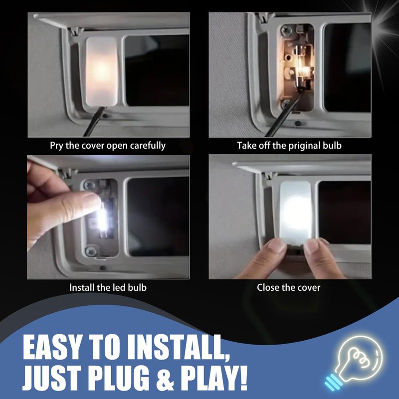 - Easy to Install: The model is the same as the original car, and the original car bulb can be directly replaced without changing the wiring. Carefully pry off the cover, take off the original bulb, and install the new LED bulb. Plug and play. If it doesn't light up when installed, just rotate the LED base 180 degrees.