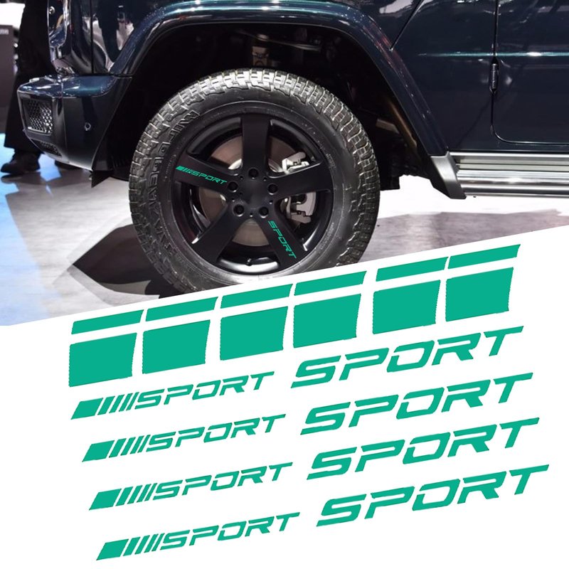 GKmow 14 PCS Car Wheel Reflective Stickers for 18-21 Inch Wheels, Sport Emblem Waterproof Wheel Rim Stripes Decal, Racing Performance Bumper Rear Mirror Universal Safety Decoration (Green)