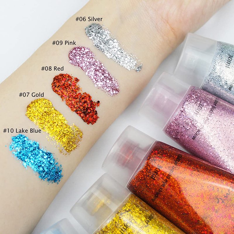 - 【Very Sparkle and Gorgeous】 Take it to the next level with our Liquid chunky glitter featuring little dot and dust for an irresistible glow. Our cosmetic glitters are made with designer formulas, high intensity pigment , holographic shine . There are 10 colors, perfect for gifts and your glitter addiction.