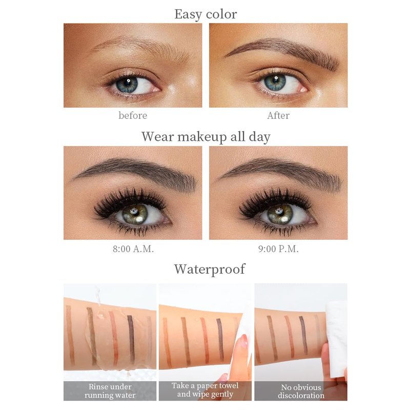 - 【Waterproof and Smudge-proof】The liquid eyebrow pencil is made with a long-lasting formula that is waterproof, sweatproof and smudge-proof. It dry quickly and lasting a all day. But you don't worry it hard to remove, It can be easily wiped off with regular makeup remover, oil, or paper.