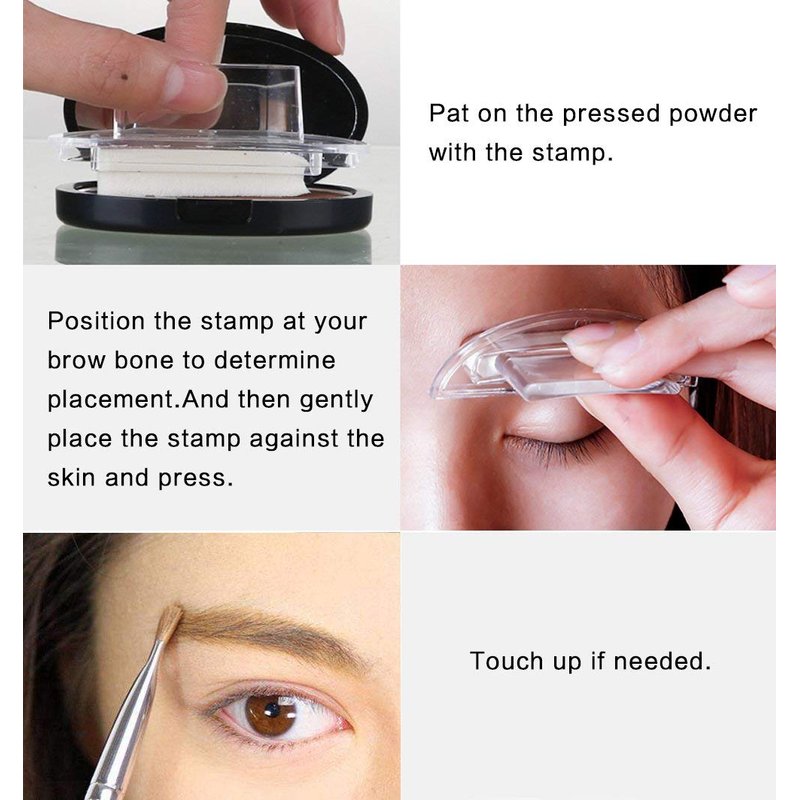 - 【How to use】 1. Take out the brow stamp, press it on the eyebrow powder box, then friction it from left to right until the stamp is full of the powder. 2. Position the stamp at your brow bone to determine placement. And then gently place the stamp against the skin and press. 3.Touch up if needed.