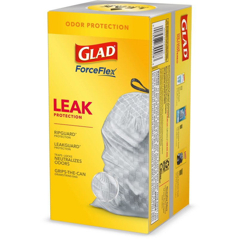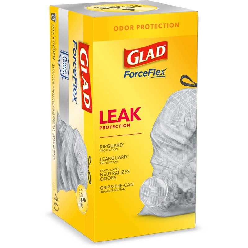 - 13 GALLON PLASTIC TRASH BAGS: Kitchen trash has never smelled better. Glad ForceFlex Kitchen trash bags with odor protection continuously neutralizes odors; Packaging may vary