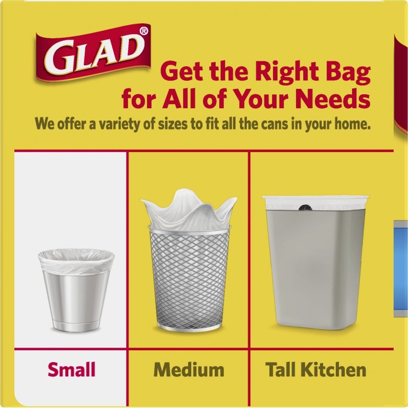 - CLEANING MADE EASY: Glad small trash bags are constructed with thicker plastic at the bottom to ensure leak protection and perfect for use throughout the home