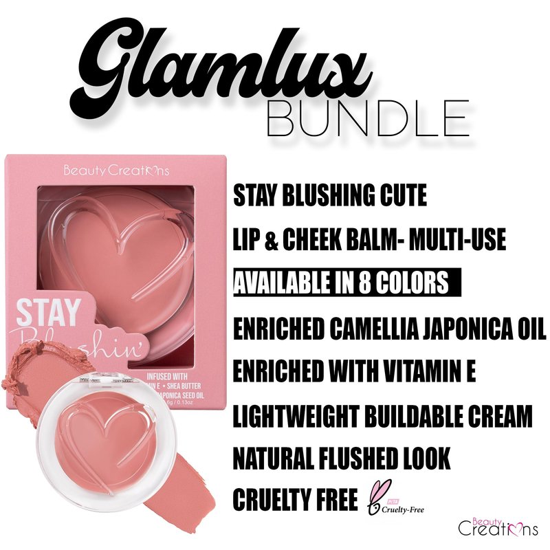 - Glam Lux Beauty Bundle: This bundle includes a variety of beauty products that are perfect for everyday use. The Stay Blushing Cute Lip & Cheek Balm Cream Blush and the Duo Eyeshadow Compact are just the beginning. You'll also receive a set of 4 mini lip glosses in different shades, a highlighter palette with 4 different highlighters, and a set of 6 false lashes. The products are all made with high-quality ingredients and are designed to give you a natural and glamorous look.