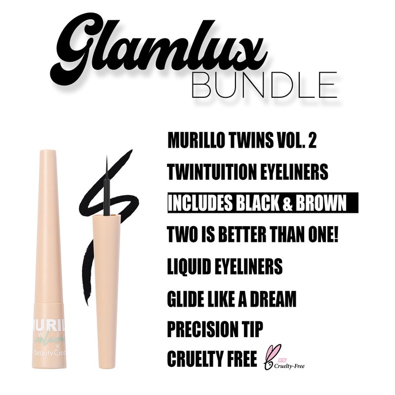 - Glam Lux Beauty Bundle Beauty Creations X Murillo Twins Vol.2 Twintuition Eyeliner Black & Brown Liquid Eyeliner Longlasting, Precise Application & Pink Collagen Lip Mask is perfect for those who want to achieve a complete and cohesive beauty routine. The three products in the bundle work together to provide you with a beautiful and healthy look that will leave you feeling confident and beautiful.