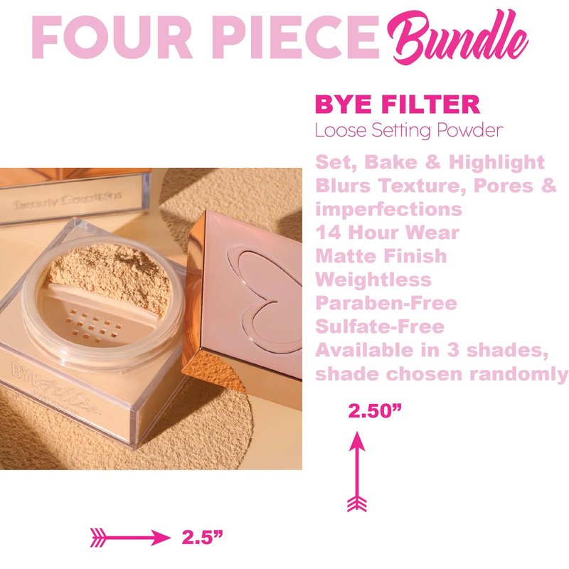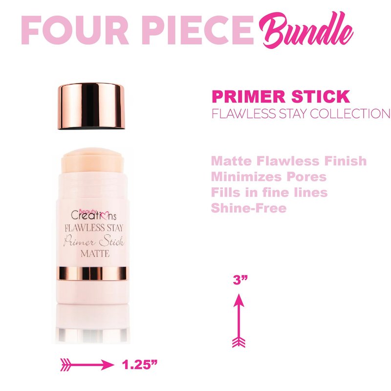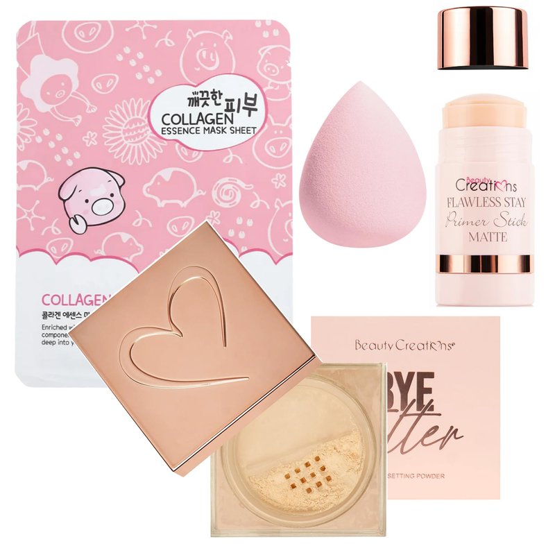 Glam Lux Beauty Bundle Set Of 4, Matte Primer Stick, Loose Setting Powder, Blending Sponge, Collagen Face Mask Sheet