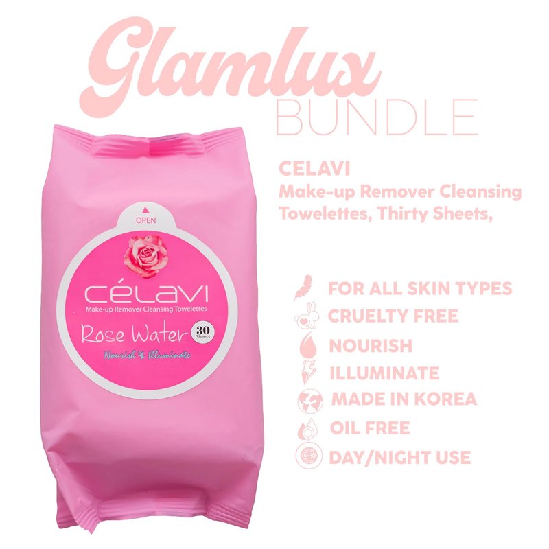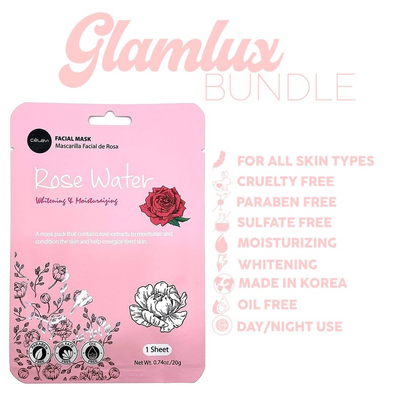 Glam Lux Bundle of 3 Korean Skincare Vegan Beauty Creations Legally Glowy Rejuvenating Moisturizer, Célavi Korean Makeup Remover Cleansing Wipes & Korean Facial Mask Paraben, Sulfate & Oil Free