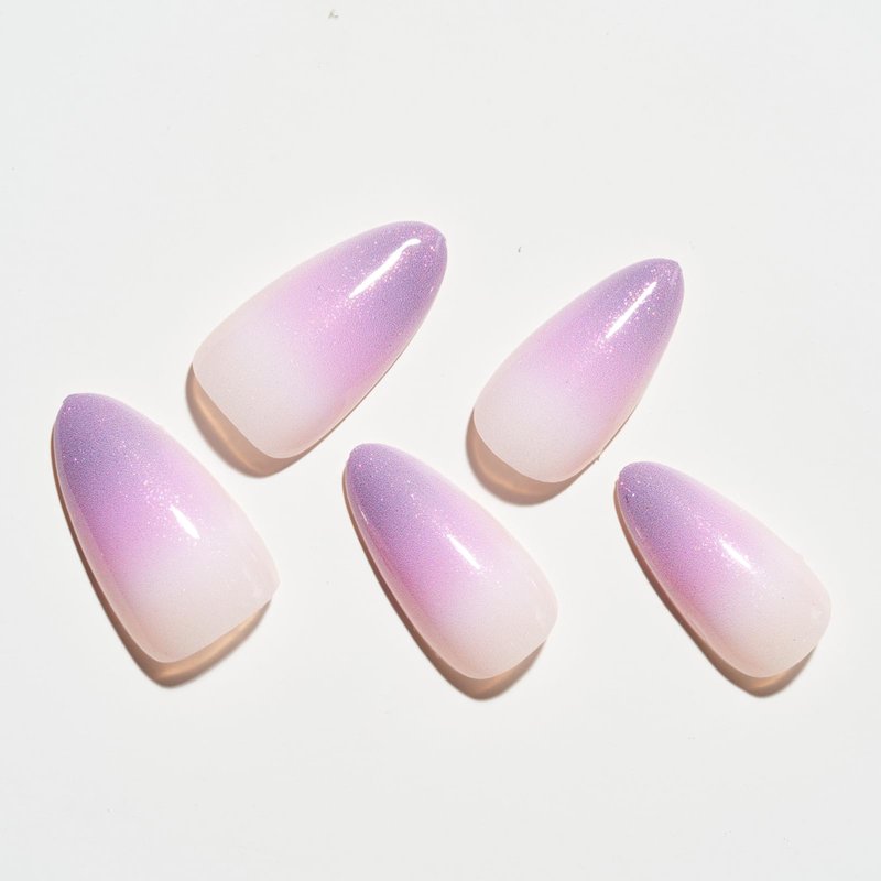 GLAMERMAID Press on Nails Almond,Purple Ombre Medium False Nails with Design,Spring 24 Pcs Glue on Nails for Women,UV Glossy Reusable Acrylic Stick on Nails Tips for Girls Gift