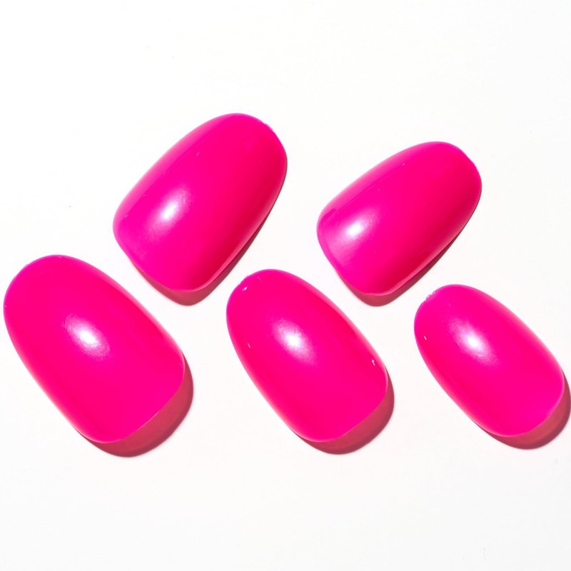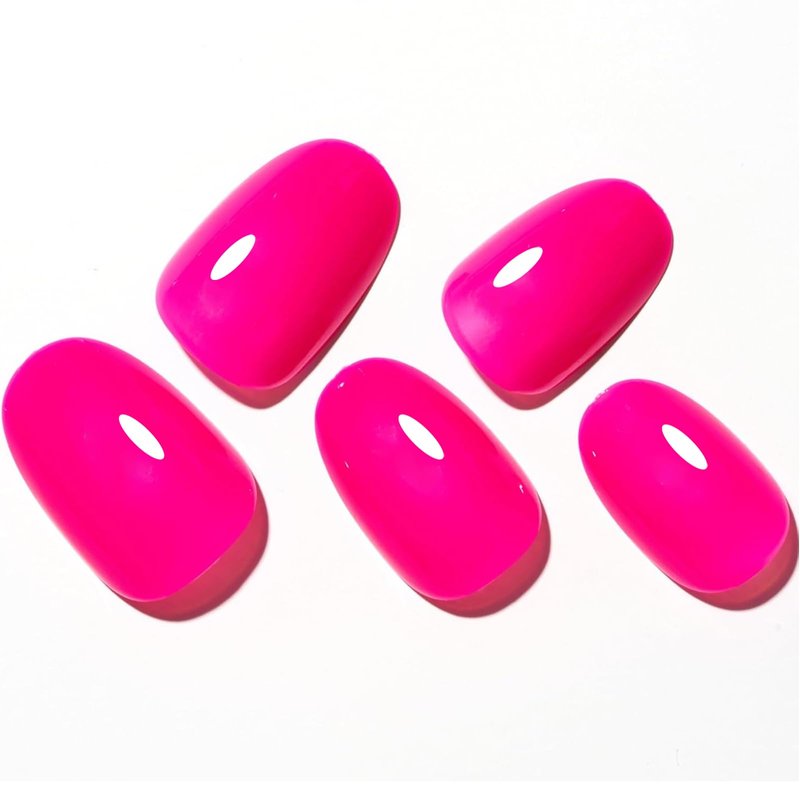 GLAMERMAID Press on Nails Oval,Hot Pink Medium False Nails with Adhesive Tabs,24 Pcs Glossy Oval Short Glue on Nails for Women,Reusable Acrylic Stick on Nails for Gift