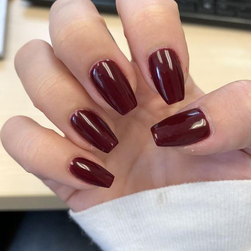 GLAMERMAID Press on Nails Short Coffin, Burgundy Glue on Gel Nails, 24Pcs Glossy Short Square Reusable UV Finish Fake Nails Acrylic False Nails Manicure Kits for Women Gift