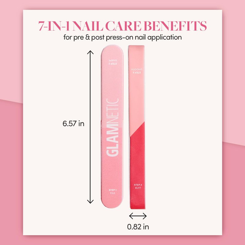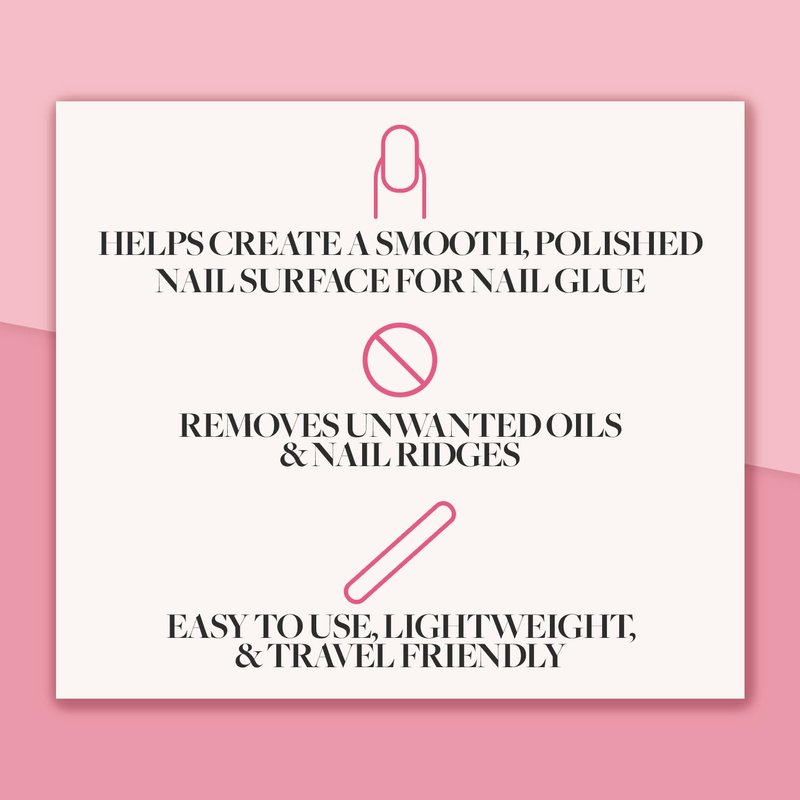 Professional Quality Nail File & Buffer: An all-in-one tool to help file, shape, smooth and polished natural nails prior to press-on nail application or in between press-on manicures. Create a healthy sheen with 7 sides to guide you through each step - simply shape, even out and shine with this all-in-one, easy-to-use buffing block.