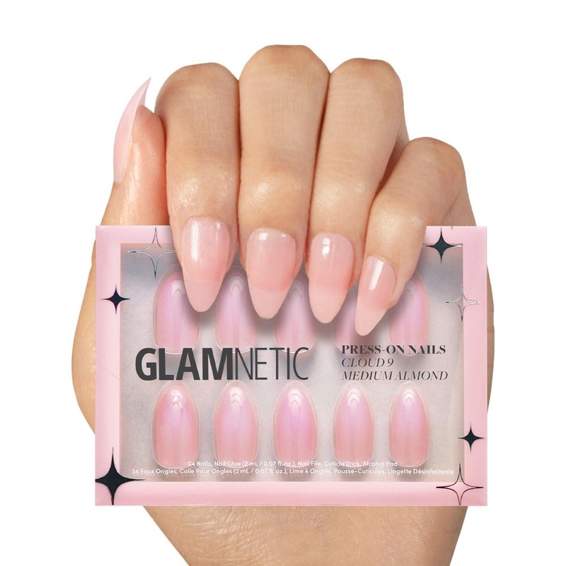 Glamnetic Press On Nails - Cloud 9 | Jelly UV Finish Medium Pointed Almond Shape, Reusable Pink Nail Kit in 15 Sizes, Semi-Transparent - 30 Nail Kit with Glue